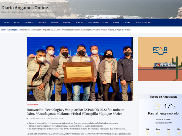 NOTICIAS DICIEMBRE 2022 (18) www.forbes.cl www.forbes.cl www.uantof.cl www.uantof.cl www.mercurioantofagasta.cl www.timeline.cl www.antofagasta.tv www.coweb.cl www.mercurioantofagasta.cl www.soychile.cl www.elreferente.cl www.portalantofagasta.cl www.estrellaantofagasta.cl www.estrellaloa.cl www.estrellatocopilla.cl www.pagina7.cl www.spam.cl www.nuevamineria.com NOVIEMBRE 2022 (34) www.coweb.cl www.mercuriocalama.cl www.mercurioantofagasta.cl www.norteminero.cl www.entreprenerd.cl www.guiaminera.cl www.tourinnovacion.cl www.prochile.gob.cl www.norteyenergia.cl www.diariolaportada.cl www.revistalogistec.com www.portalminero.com www.mercuriocalama.cl www.soychile.cl www.diarioangamos.com www.sevas.life www.estrellaarica.cl www.diarioatacama.cl www.estrellaiquique.cl www.mercuriocalama.cl www.mercurioantofagasta.cl www.estrellatocopilla.cl www.estrellaloa.cl www.estrellaantofagasta.cl www.estrellaantofagasta.cl www.elmercurio.com www.mercurioantofagasta.cl www.portalinnova.cl www.me.cl www.elmercurio.com www.emol.com www.diarioestrategia.cl www.elcalbucano.cl www.aduana.cl OCTUBRE 2022 (11) www.df.cl www.institutofrances.cl www.emol.com www.df.cl www.t13.cl www.inria.cl www.guiaminera.cl www.timeline.cl www.fmquiero.cl www.norteyenergia.cl www.g5noticias.cl SEPTIEMBRE 2022 (24) www.norteminero.cl www.mercurioantofagasta.cl www.mercuriocalama.cl www.estrellaiquique.cl www.diarioatacama.cl www.estrellaarica.cl www.coweb.cl www.guiaminera.cl www.amagazine.cl www.procandelaria.cl www.prodelcobre.cl www.aia.cl www.americaminera.com www.mining-trends.com www.reporteminero.cl www.g5noticias.cl www.tourinnovacion.cl www.revistartt.cl www.estrellaantofagasta.cl www.estrellaloa.cl www.estrellatocopilla.cl www.mineriaenergia.com www.huaral.pe www.greads.net AGOSTO 2022 (1) www.valorpyme.cl JULIO 2022 (2) www.mercadovial.tv www.tekhnozhizni.com.ua JUNIO 2022 (29) www.df.cl www.estrellaloa.cl www.estrellatocopilla.cl www.estrellaantofagasta.cl www.guiaminera.cl diariofinanciero.pressreader.com www.redimin.cl www.exponor.cl www.diarioantofagasta.cl www.biobiochile.cl www.portalminero.com www.elnortero.cl www.df.cl www.tourinnovacion.cl www.americaminera.com www.timeline.cl www.revistartt.cl www.mvcomunicaciones.cl www.norteyenergia.cl www.diarioangamos.com www.elpuertocowork.cl www.imineros.com exploracionesmineras.cl www.mineriaenergia.com www.huaral.pe reporteconfidencial.info www.omgbulletin.com www.singulardigital.mx www.tecmineria.com MAYO 2022 (3) www.smartco.cl https://health.grid.id https://today.line.me ABRIL 2022 (6) www.lun.com www.azerta.pe www.zh.ifindfact.com www.aginformacion.tv www.azerta.cl www.shiliancaijing.com MARZO 2022 (16) www.azerta.cl www.extranoticias.cl www.estrellaantofagasta.cl www.estrellaloa.cl www.estrellatocopilla.cl www.uestv.cl www.diariosostenible.cl www.elamerica.cl www.otl-ua.cl www.uestatales.cl www.laquinta-news.com www.mercuriocalama.cl www.mercurioantofagasta.cl www.comunicacionesua.cl www.vnexplorer.net www.actubisontine.com FEBRERO 2022 (22) Ebook 3M www.mercurioantofagasta.cl www.mercuriocalama.cl www.3m.com www.egade.tec.mx www.laquinta-news.com www.antofagastafuturo.cl www.elmostrador.cl www.agenciaboulevard.cl www.alegratefm.cl www.fm7.cl www.periodicolea.com.ar www.antofagasta.tv www.amcanal.cl www.coweb.cl www.timeline.cl www.elamerica.cl www.norteyenergia.cl www.cpcomunicaciones.cl www.antofapop.cl www.ninafm.cl www.nortehoy.com www.animalworld.com.ua ENERO 2022 (10) www.polymedia.ch www.nuevamineria.com www.romantica.cl www.biobiochile.cl www.amagazine.cl www.thetimes.cl www.ecbasis.com www.biitime.com www.assignmentpoint.com www.energieleben.at NOTICIAS 2021